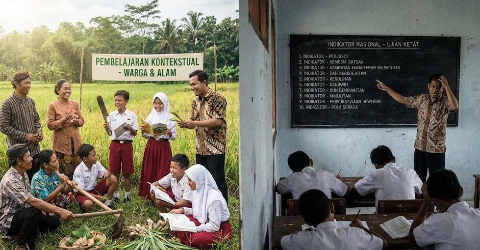 Sekolah-sekolah di kawasan perdesaan sering menghadapi tantangan keterbatasan guru dan sarana. Pemerintah daerah mengembangkan metode pembelajaran kontekstual yang melibatkan masyarakat dan memanfaatkan sumber daya lokal. Ketika kurikulum dan metode evaluasi nasional diterapkan secara ketat, ruang untuk pendekatan kontekstual menyempit. Guru harus fokus pada pencapaian indikator nasional, sementara kebutuhan spesifik siswa di daerah kurang mendapatkan perhatian.